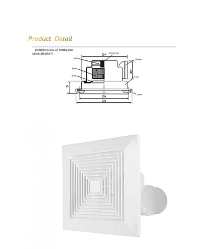ميزات مروحه شفط سقف مربع شبك 10 بوصة